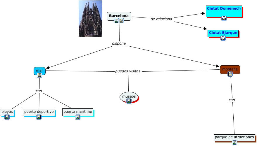 Barcelona, Barcelona se relaciona Ciutat Ejarque, Barcelona dispone montaña, mar con puerto deportivo, montaña puedes visitas museos, mar con puerto marítimo, mar puedes visitas museos, Barcelona se relaciona Ciutat Domenech, mar con playas, Barcelona dispone mar, montaña con parque de atracciones