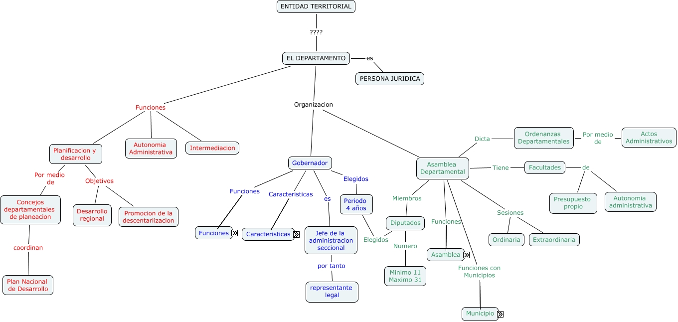 Regimen Departamental, Gobernador Funciones Mantener el orden publico, Facultades de Presupuesto propio, Planificacion y desarrollo Objetivos Promocion de la descentarlizacion, Facultades de Autonomia administrativa, EL DEPARTAMENTO Funciones Planificacion y desarrollo, Asamblea Departamental Tiene Facultades, Diputados Elegidos Periodo 4 años, EL DEPARTAMENTO Funciones Intermediacion, Asamblea Departamental Funciones Dirigir recursos del departamento, Diputados Numero Minimo 11 Maximo 31