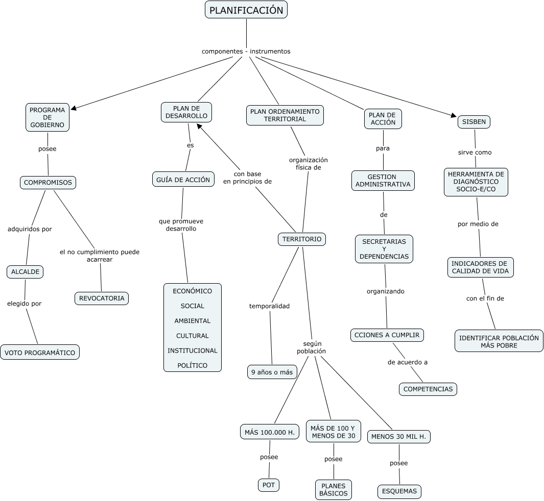 PLANIFICACION LOCAL JULIAN RUIZ 8152, HERRAMIENTA DE DIAGNÓSTICO SOCIO-E/CO por medio de INDICADORES DE CALIDAD DE VIDA, PLANIFICACIÓN componentes - instrumentos PLAN DE DESARROLLO, PLAN ORDENAMIENTO TERRITORIAL organización física de TERRITORIO, TERRITORIO según población MENOS 30 MIL H., PLANIFICACIÓN componentes - instrumentos SISBEN, CCIONES A CUMPLIR de acuerdo a COMPETENCIAS, GESTION ADMINISTRATIVA de SECRETARIAS Y DEPENDENCIAS, SISBEN sirve como HERRAMIENTA DE DIAGNÓSTICO SOCIO-E/CO, TERRITORIO con base en principios de PLAN DE DESARROLLO, COMPROMISOS adquiridos por ALCALDE
