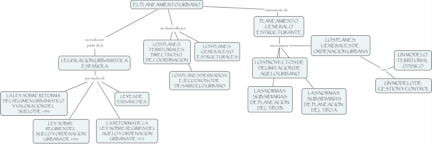 IQ.Planeamiento UrbanoII, PLANEAMIENTO GENERAL O ESTRUCTURANTE mecanismos LAS NORMAS SUBSIDIARIAS DE PLANEACION DEL TIPO B, PLANEAMIENTO GENERAL O ESTRUCTURANTE mecanismos LOS PLANES GENERALES DE ORDENACION URBANA, LEGISLACION URBANISTICA ESPAÑOLA por medio de LA LEY SOBRE REFORMA DEL REGIMEN URBANISTICO Y VALORACION DEL SUELO DE 1990, EL PLANEAMIENTO URBANO se desarrolla por LOS PLANES GENERALES O ESTRUCTURALES, PLANEAMIENTO GENERAL O ESTRUCTURANTE mecanismos LAS NORMAS SUBSIDIARIAS DE PLANEACION DEL TIPO A, LOS PLANES GENERALES DE ORDENACION URBANA con UN MODELO DE GESTION Y CONTROL, LEGISLACION URBANISTICA ESPAÑOLA por medio de LEYES DE ENSANCHES, LEGISLACION URBANISTICA ESPAÑOLA por medio de LEY SOBRE REGIMEN DEL SUELO Y ORDENACION URBANA DE 1956, LEGISLACION URBANISTICA ESPAÑOLA por medio de LA REFORMA DE LA LEY SOBRE REGIMEN DEL SUELO Y ORDENACION URBANA DE 1975, EL PLANEAMIENTO URBANO se desarrolla por LOS PLANES TERRITORIALES, DIRECTIVOS O DE COORDINACION