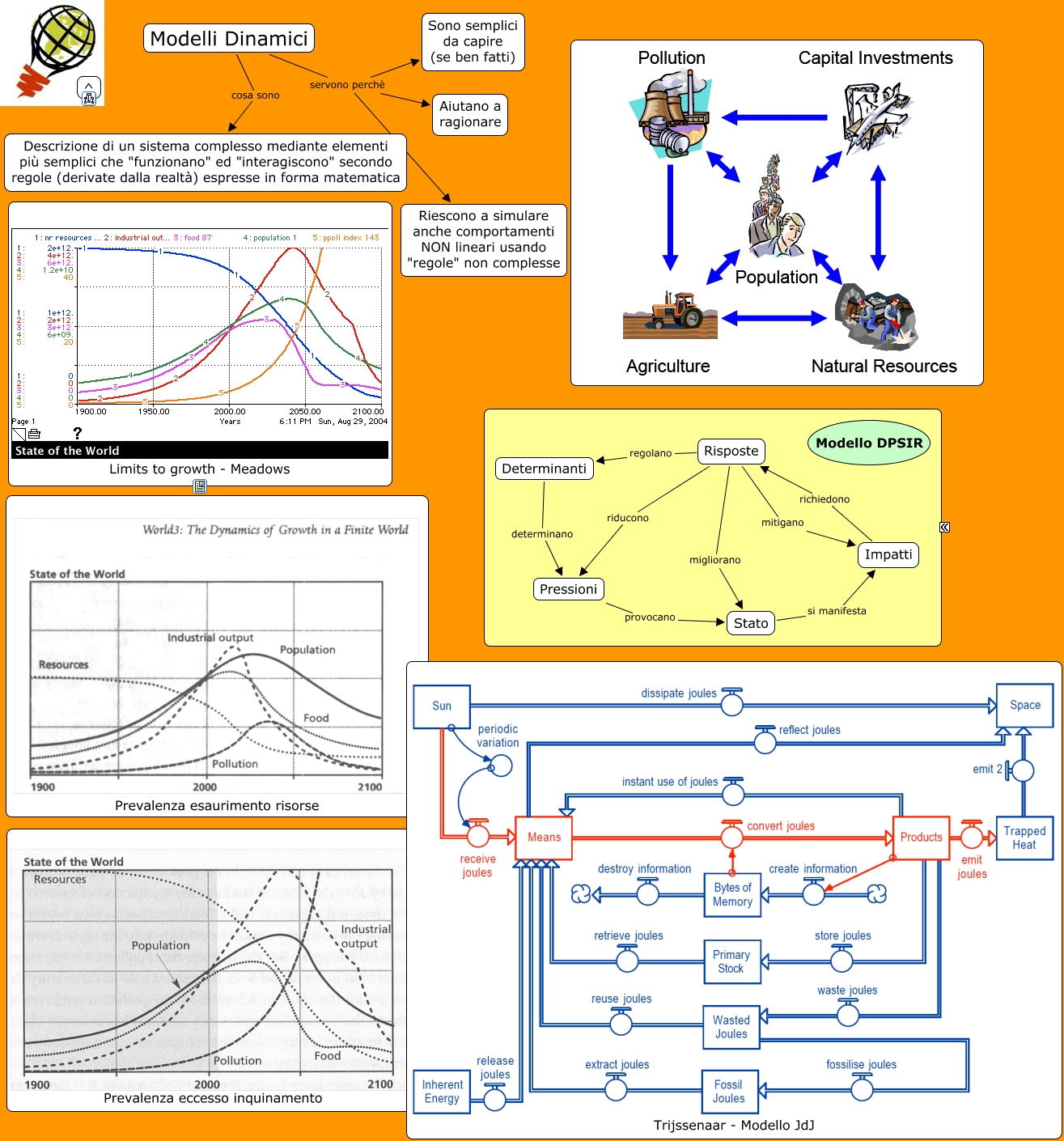 ModelliDinamici, Risposte regolano Determinanti, Pressioni provocano Stato, Modelli Dinamici servono perchè Riescono a simulare anche comportamenti NON lineari usando "regole" non complesse, Modelli Dinamici servono perchè Sono semplici da capire (se ben fatti), Modelli Dinamici cosa sono Descrizione di un sistema complesso mediante elementi più semplici che "funzionano" ed "interagiscono" secondo regole (derivate dalla realtà) espresse in forma matematica, Risposte migliorano Stato, Risposte riducono Pressioni, Impatti richiedono Risposte, Risposte mitigano Impatti, Stato si manifesta Impatti