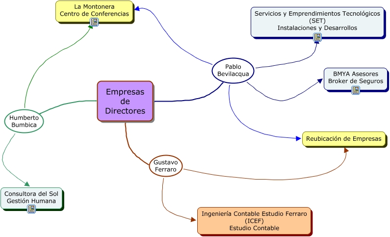 GH - Mapa de Empresas - BFB, Empresas de Directores Gustavo Ferraro Reubicación de Empresas, Empresas de Directores Pablo Bevilacqua BMYA Asesores Broker de Seguros, Empresas de Directores Gustavo Ferraro Ingeniería Contable Estudio Ferraro (ICEF) Estudio Contable, Empresas de Directores Pablo Bevilacqua La Montonera Centro de Conferencias, Empresas de Directores Humberto Bumbica Consultora del Sol Gestión Humana, Empresas de Directores Pablo Bevilacqua Servicios y Emprendimientos Tecnológicos (SET) Instalaciones y Desarrollos, Empresas de Directores Humberto Bumbica La Montonera Centro de Conferencias, Empresas de Directores Pablo Bevilacqua Reubicación de Empresas