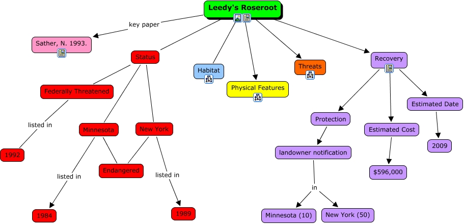 Leedy's Roseroot - A plant on the brink of extinction, New York Endangered, Recovery Estimated Date, Estimated Date 2009, Status Federally Threatened, Leedy's Roseroot key paper Sather, N. 1993., Protection landowner notification, landowner notification in New York (50), Minnesota Endangered, Leedy's Roseroot Physical Features, Status New York