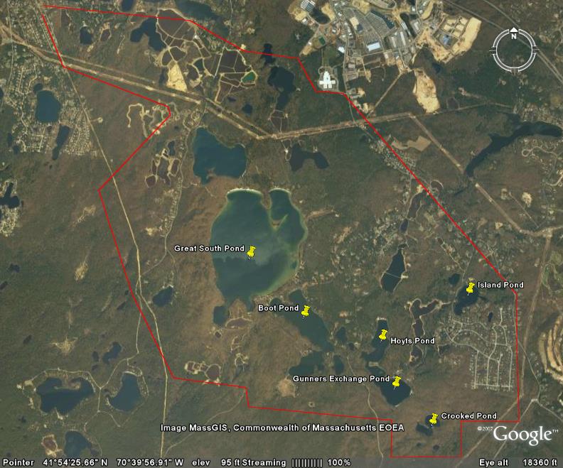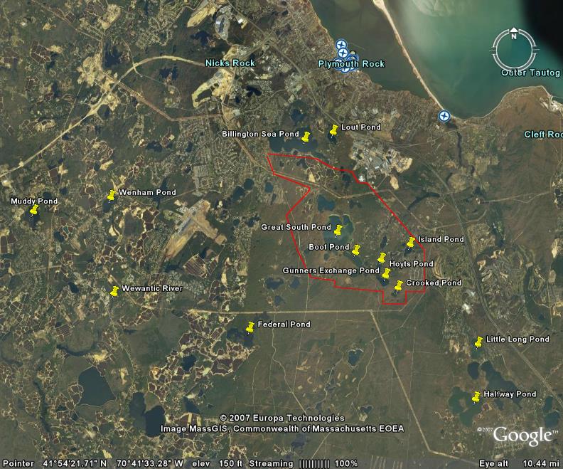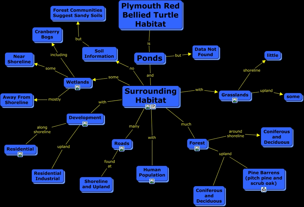 Habitat Status, Roads found at Shoreline and Upland, Development along shoreline Residential, Forest around shoreline Coniferous and Deciduous, Grasslands upland some, Surrounding Habitat some Wetlands, Surrounding Habitat with Grasslands, Plymouth Red Bellied Turtle Habitat is Ponds, Wetlands including Cranberry Bogs, Forest upland Coniferous and Deciduous, Surrounding Habitat with Development