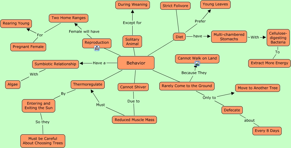 Behavior, Reproduction Female will have Two Home Ranges, Behavior ???? Solitary Animal, Behavior ???? Cannot Shiver, Behavior ???? Reproduction, Rarely Come to the Ground Only to Move to Another Tree, Cannot Shiver Due to Reduced Muscle Mass, Diet Prefer Young Leaves, Two Home Ranges For Pregnant Female, Rarely Come to the Ground Because They Cannot Walk on Land, Two Home Ranges For Rearing Young
