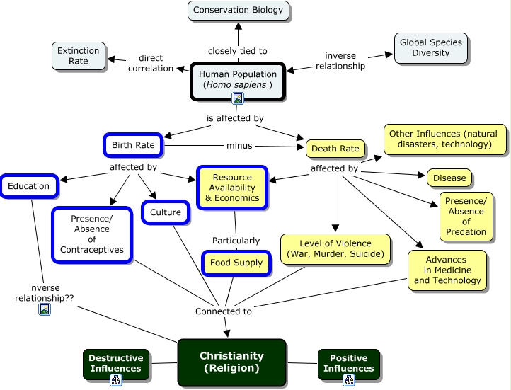 religion & conservation biology, Death Rate affected by Other Influences (natural disasters, technology), Birth Rate affected by Resource Availability & Economics, Advances in Medicine and Technology Connected to Christianity (Religion), Birth Rate affected by Presence/ Absence of Contraceptives, Death Rate affected by Advances in Medicine and Technology, Death Rate affected by Disease, Destructive Influences Christianity (Religion), Birth Rate affected by Culture, Death Rate affected by Presence/ Absence of Predation, Death Rate affected by Resource Availability & Economics