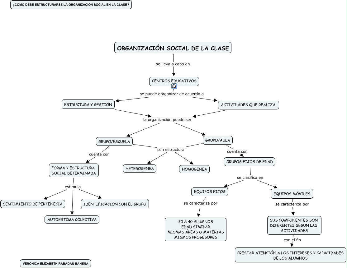ORGANIZACIÓN SOCIAL DE LA CLASE, GRUPOS FIJOS DE EDAD se clasifica en EQUIPOS MÓVILES, GRUPO/ESCUELA cuenta con FORMA Y ESTRUCTURA SOCIAL DETERMINADA, ACTIVIDADES QUE REALIZA la organización puede ser GRUPO/ESCUELA, FORMA Y ESTRUCTURA SOCIAL DETERMINADA estimula IDENTIFICACIÓN CON EL GRUPO, FORMA Y ESTRUCTURA SOCIAL DETERMINADA estimula SENTIMIENTO DE PERTENECIA, EQUIPOS FIJOS se caracteriza por 20 A 40 ALUMNOS EDAD SIMILAR MISMAS ÁREAS O MATERIAS MISMOS PROGESORES, CENTROS EDUCATIVOS se puede oraganizar de acuerdo a ACTIVIDADES QUE REALIZA, EQUIPOS MÓVILES se caracteriza por SUS COMPONENTES SON DIFERENTES SEGUN LAS ACTIVIDADES, GRUPO/AULA cuenta con GRUPOS FIJOS DE EDAD, ACTIVIDADES QUE REALIZA la organización puede ser GRUPO/AULA