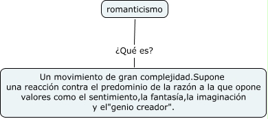 Este mapa conceptual tiene información relacionada a: que es e l romantconexto hco.cultu, romanticismo ¿Qué es? Un movimiento de gran complejidad.Supone una reacción contra el predominio de la razón a la que opone valores como el sentimiento,la fantasía,la imaginación y el"genio creador".