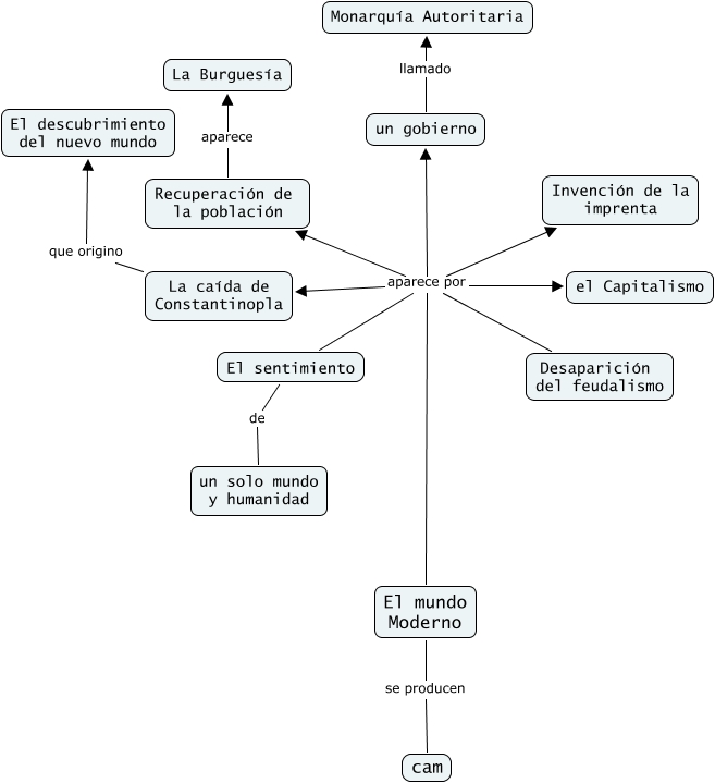 Este mapa conceptual tiene información relacionada a: 11-Alberto Fernández Foncilla - Edad Moderna, Recuperación de la población aparece La Burguesía, El mundo Moderno aparece por un gobierno, El mundo Moderno aparece por El sentimiento, El mundo Moderno aparece por Invención de la imprenta, La caída de Constantinopla que origino El descubrimiento del nuevo mundo, El sentimiento de un solo mundo y humanidad, El mundo Moderno aparece por Desaparición del feudalismo, El mundo Moderno aparece por el Capitalismo, El mundo Moderno se producen cam, El mundo Moderno aparece por Recuperación de la población