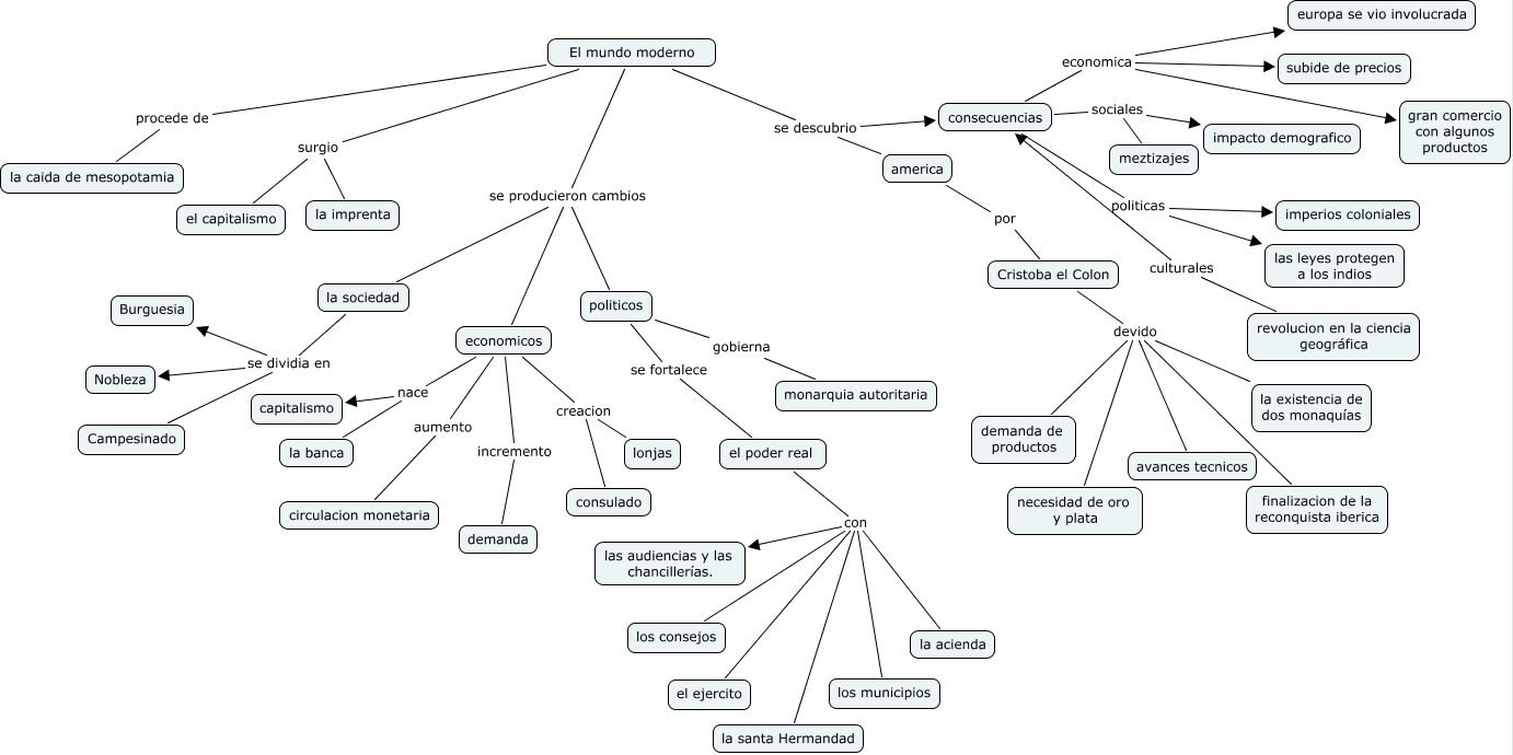 Este Cmap, tiene información relacionada con: 02-adolfo avila ruiz-edad moderna, el poder real con las audiencias y las chancillerías., El mundo moderno procede de la caida de mesopotamia, consecuencias economica europa se vio involucrada, el poder real con los municipios, consecuencias sociales impacto demografico, consecuencias politicas las leyes protegen a los indios, Cristoba el Colon devido avances tecnicos, economicos incremento demanda, Cristoba el Colon devido necesidad de oro y plata, El mundo moderno se producieron cambios politicos, El mundo moderno se producieron cambios economicos, el poder real con los consejos, El mundo moderno se descubrio consecuencias, economicos creacion lonjas, economicos aumento circulacion monetaria, economicos creacion consulado, la sociedad se dividia en Nobleza, politicos se fortalece el poder real, la sociedad se dividia en Campesinado, consecuencias economica subide de precios