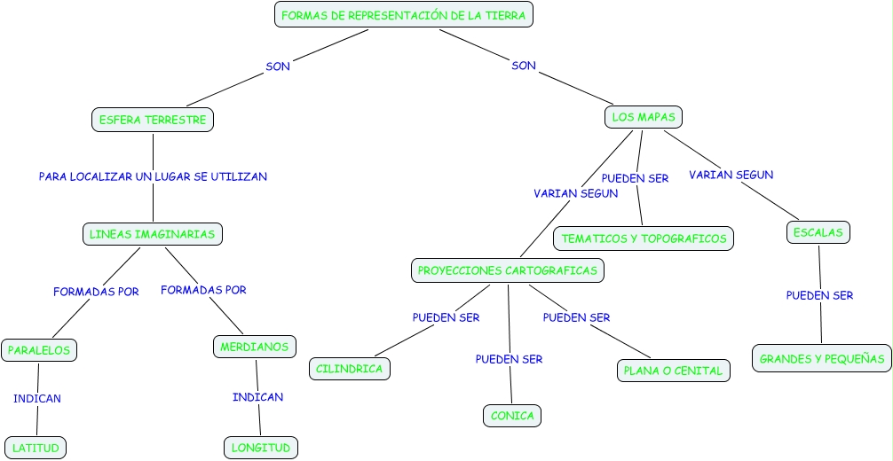 Este mapa conceptual tiene información relacionada a: alvaro tenorio2, LINEAS IMAGINARIAS FORMADAS POR MERDIANOS, ESCALAS PUEDEN SER GRANDES Y PEQUEÑAS, MERDIANOS INDICAN LONGITUD, LOS MAPAS VARIAN SEGUN PROYECCIONES CARTOGRAFICAS, PROYECCIONES CARTOGRAFICAS PUEDEN SER PLANA O CENITAL, LINEAS IMAGINARIAS FORMADAS POR PARALELOS, PARALELOS INDICAN LATITUD, LOS MAPAS VARIAN SEGUN ESCALAS, LOS MAPAS PUEDEN SER TEMATICOS Y TOPOGRAFICOS, FORMAS DE REPRESENTACIÓN DE LA TIERRA SON LOS MAPAS