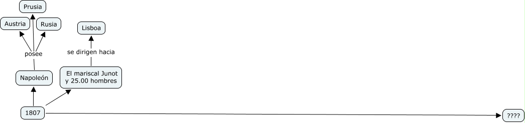 Este mapa conceptual tiene información relacionada a: 04.Macarena Astorga Arboleda, Napoleón posee Rusia, Napoleón posee Prusia, El mariscal Junot y 25.00 hombres se dirigen hacia Lisboa, 1807 Napoleón, Napoleón posee Austria, 1807 El mariscal Junot y 25.00 hombres, 1807 ????