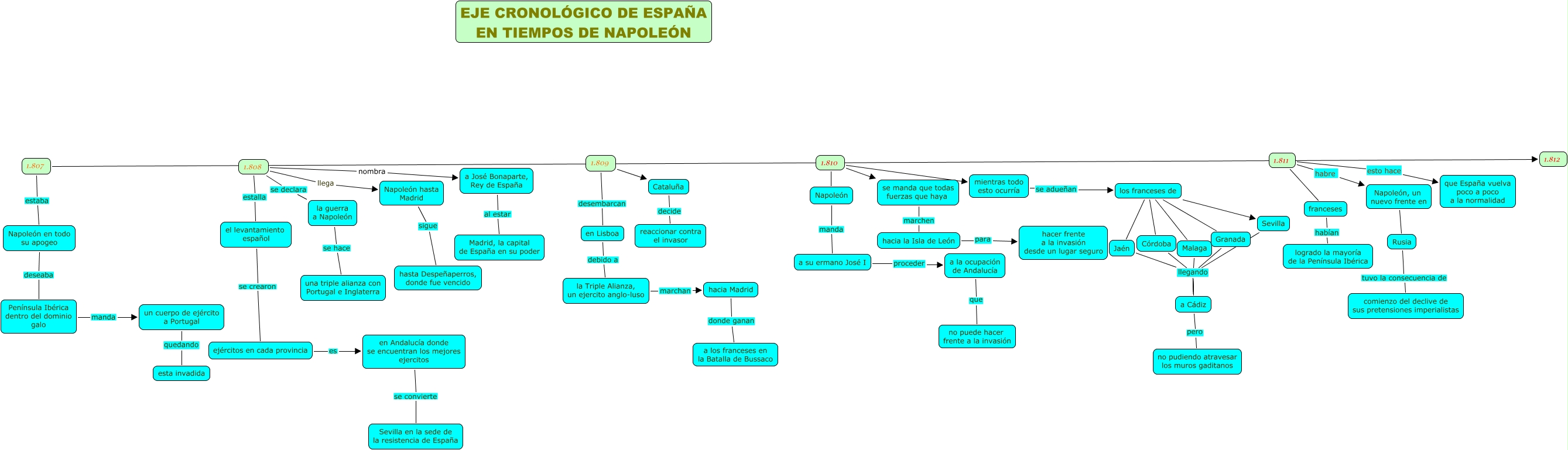 Este mapa conceptual tiene información relacionada a: 08.Pablo Cossío Guerrero, Napoleón en todo su apogeo deseaba Península Ibérica dentro del dominio galo, 1.811 esto hace que España vuelva poco a poco a la normalidad, ejércitos en cada provincia es en Andalucía donde se encuentran los mejores ejercitos, en Lisboa debido a la Triple Alianza, un ejercito anglo-luso, 1.808 llega Napoleón hasta Madrid, Península Ibérica dentro del dominio galo manda un cuerpo de ejército a Portugal, 1.808 estalla el levantamiento español, el levantamiento español se crearon ejércitos en cada provincia, se manda que todas fuerzas que haya marchen hacia la Isla de León, los franceses de Córdoba, 1.807 1.812, 1.811 franceses, los franceses de Jaén, Napoleón, un nuevo frente en Rusia, un cuerpo de ejército a Portugal quedando esta invadida, hacia la Isla de León para hacer frente a la invasión desde un lugar seguro, 1.810 mientras todo esto ocurría, Napoleón manda a su ermano José I, 1.808 nombra a José Bonaparte, Rey de España, mientras todo esto ocurría se adueñan los franceses de