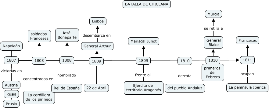 Este mapa conceptual tiene información relacionada a: 19-Pablo Moreno Ramírez, Napoleón victorias en Rusia, 1810 primeros de Febrero, General Arthur desembarca en Lisboa, Napoleón victorias en Prusia, 1809 General Arthur, 1811 Franceses, 1809 22 de Abril, 1809 frente al Ejercito de territorio Aragonés, 1808 nombrado Rei de España, 1811 ocupan La peninsula Iberica