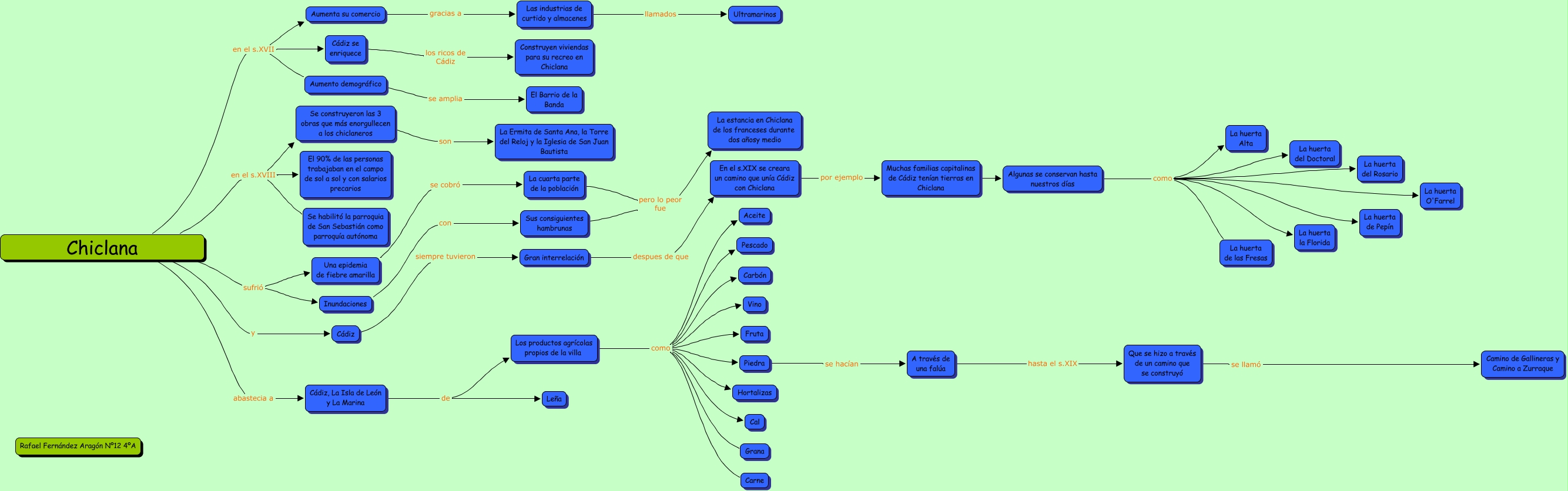 12.Rafael Fernández Aragón.Chiclana antes de la batalla, Chiclana abastecia a Cádiz, La Isla de León y La Marina, Muchas familias capitalinas de Cádiz tenían tierras en Chiclana Algunas se conservan hasta nuestros días, Algunas se conservan hasta nuestros días como La huerta de Pepín, Una epidemia de fiebre amarilla se cobró La cuarta parte de la población, Chiclana en el s.XVIII Se habilitó la parroquia de San Sebastián como parroquía autónoma, Chiclana en el s.XVII Aumento demográfico, Chiclana en el s.XVIII Se construyeron las 3 obras que más enorgullecen a los chiclaneros, Los productos agrícolas propios de la villa como Cal, Las industrias de curtido y almacenes llamados Ultramarinos, Aumenta su comercio gracias a Las industrias de curtido y almacenes