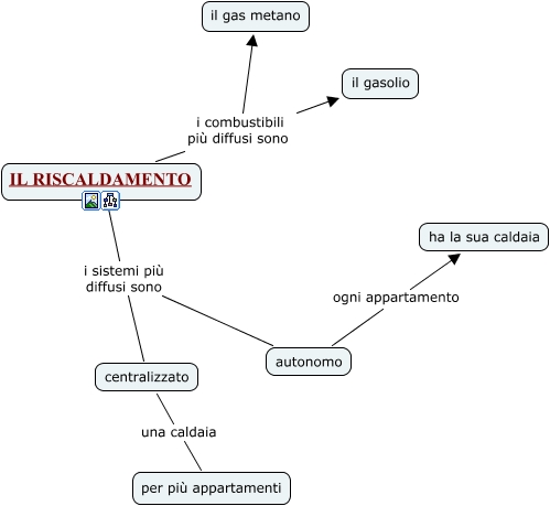 Questa Mappa Concettuale ha informazioni correlate a: Riscaldamento, IL RISCALDAMENTO i combustibili più diffusi sono il gas metano, IL RISCALDAMENTO i sistemi più diffusi sono centralizzato, IL RISCALDAMENTO i combustibili più diffusi sono il gasolio, autonomo ogni appartamento ha la sua caldaia, IL RISCALDAMENTO i sistemi più diffusi sono autonomo, centralizzato una caldaia per più appartamenti