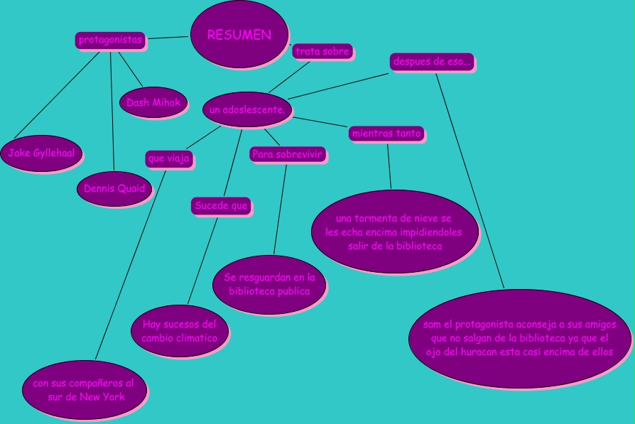 Resumen el dia de mañana, un adoslescente. despues de eso... sam el protagonista aconseja a sus amigos que no salgan de la biblioteca ya que el ojo del huracan esta casi encima de ellos, RESUMEN protagonistas Dash Mihok, RESUMEN trata sobre un adoslescente., un adoslescente. Para sobrevivir Se resguardan en la biblioteca publica, un adoslescente. mientras tanto una tormenta de nieve se les echa encima impidiendoles salir de la biblioteca, un adoslescente. Sucede que Hay sucesos del cambio climatico, un adoslescente. que viaja con sus compañeros al sur de New York, RESUMEN protagonistas Dennis Quaid, RESUMEN protagonistas Jake Gyllehaal