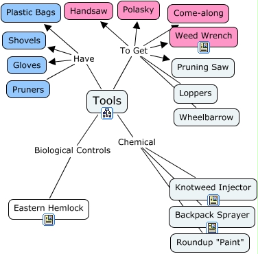 This Concept Map, created with IHMC CmapTools, has information related to: Tools for invasive species removal, Tools Have Pruners, Tools To Get Polasky, Tools Chemical Backpack Sprayer, Tools Have Shovels, Tools To Get Pruning Saw, Tools Biological Controls Eastern Hemlock, Tools To Get Weed Wrench, Tools Have Gloves, Tools Have Plastic Bags, Tools To Get Loppers, Tools To Get Wheelbarrow, Tools To Get Handsaw, Tools Chemical Roundup "Paint", Tools Chemical Knotweed Injector, Tools To Get Come-along
