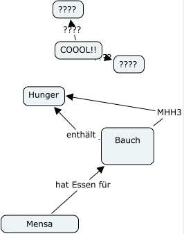 Dieses mit IHMC CmapTools erstellte CMap hat Informationen bezüglich: Gemeinsames Cmap, Bauch enthält Hunger, Bauch MHH3 Hunger, COOOL!! ???? ????, Mensa hat Essen für Bauch, COOOL!! ???? ????