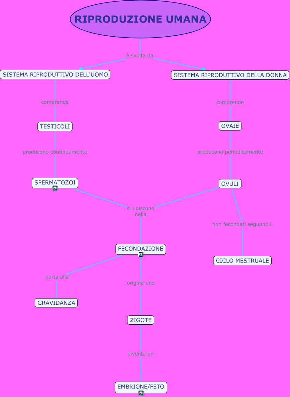 Questa Cmap, creata con IHMC CmapTools, contiene informazioni relative a: APPARATO RIPRODUTTIVO, OVULI non fecondati seguono il CICLO MESTRUALE, TESTICOLI producono continuamente SPERMATOZOI, FECONDAZIONE origina uno ZIGOTE, RIPRODUZIONE UMANA è svolta da SISTEMA RIPRODUTTIVO DELL'UOMO, SPERMATOZOI si uniscono nella OVULI, RIPRODUZIONE UMANA è svolta da SISTEMA RIPRODUTTIVO DELLA DONNA, SISTEMA RIPRODUTTIVO DELL'UOMO comprende TESTICOLI, FECONDAZIONE porta alla GRAVIDANZA, ZIGOTE diventa un EMBRIONE/FETO, SISTEMA RIPRODUTTIVO DELLA DONNA comprende OVAIE, OVAIE producono periodicamente OVULI, SPERMATOZOI si uniscono nella FECONDAZIONE