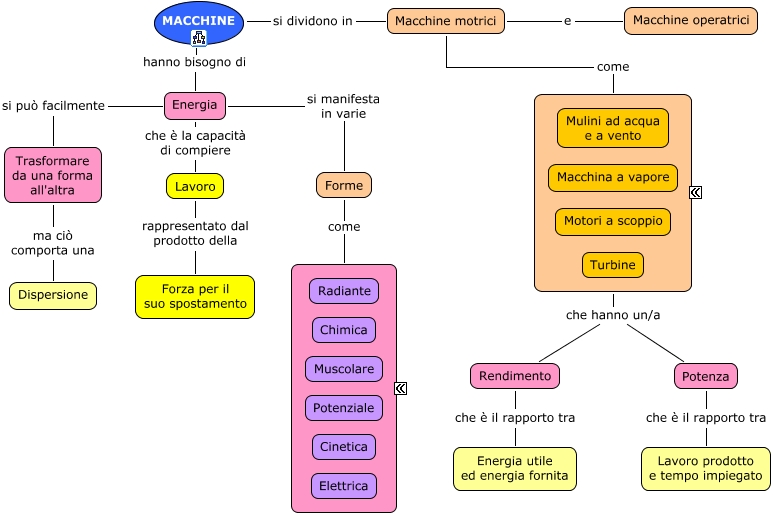 Questa Cmap, creata con IHMC CmapTools, contiene informazioni relative a: Macchine, Potenza che è il rapporto tra Lavoro prodotto e tempo impiegato, Macchine motrici e Macchine operatrici, Energia si manifesta in varie Forme, MACCHINE hanno bisogno di Energia, Macchine motrici come Vari tipi di macchine motrici, Vari tipi di macchine motrici che hanno un/a Rendimento, Energia che è la capacità di compiere Lavoro, MACCHINE si dividono in Macchine motrici, Energia si può facilmente Trasformare da una forma all'altra, Vari tipi di macchine motrici che hanno un/a Potenza, Rendimento che è il rapporto tra Energia utile ed energia fornita, Trasformare da una forma all'altra ma ciò comporta una Dispersione, Forme come Vari forme di energia, Lavoro rappresentato dal prodotto della Forza per il suo spostamento