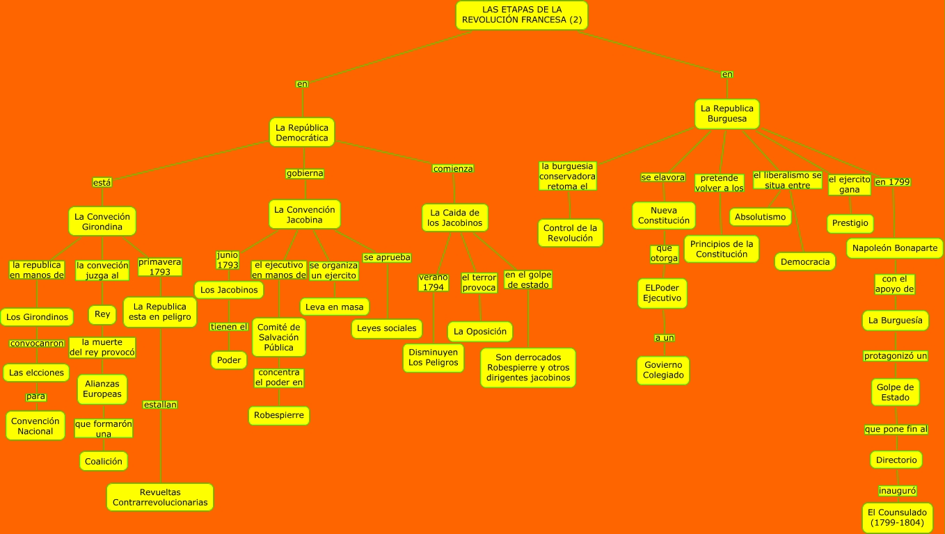 Este mapa conceptual tiene información relacionada a: Las etapas de la Revolución Francesa (2) JUAN JESÚS CUBILES Nº10 4ºA, La Conveción Girondina la conveción juzga al Rey, Golpe de Estado que pone fin al Directorio, La Republica Burguesa se elavora Nueva Constitución, Los Girondinos convocanron Las elcciones, La Caida de los Jacobinos el terror provoca La Oposición, La Republica esta en peligro estallan Revueltas Contrarrevolucionarias, La República Democrática comienza La Caida de los Jacobinos, Rey la muerte del rey provocó Alianzas Europeas, La Convención Jacobina se aprueba Leyes sociales, La Republica Burguesa el liberalismo se situa entre Democracia, Alianzas Europeas que formarón una Coalición, La Convención Jacobina el ejecutivo en manos de Comité de Salvación Pública, ELPoder Ejecutivo a un Govierno Colegiado, La Republica Burguesa en 1799 Napoleón Bonaparte, La Republica Burguesa la burguesia conservadora retoma el Control de la Revolución, La Republica Burguesa el ejercito gana Prestigio, Las elcciones para Convención Nacional, Los Jacobinos tienen el Poder, La Caida de los Jacobinos verano 1794 Disminuyen Los Peligros, LAS ETAPAS DE LA REVOLUCIÓN FRANCESA (2) en La Republica Burguesa