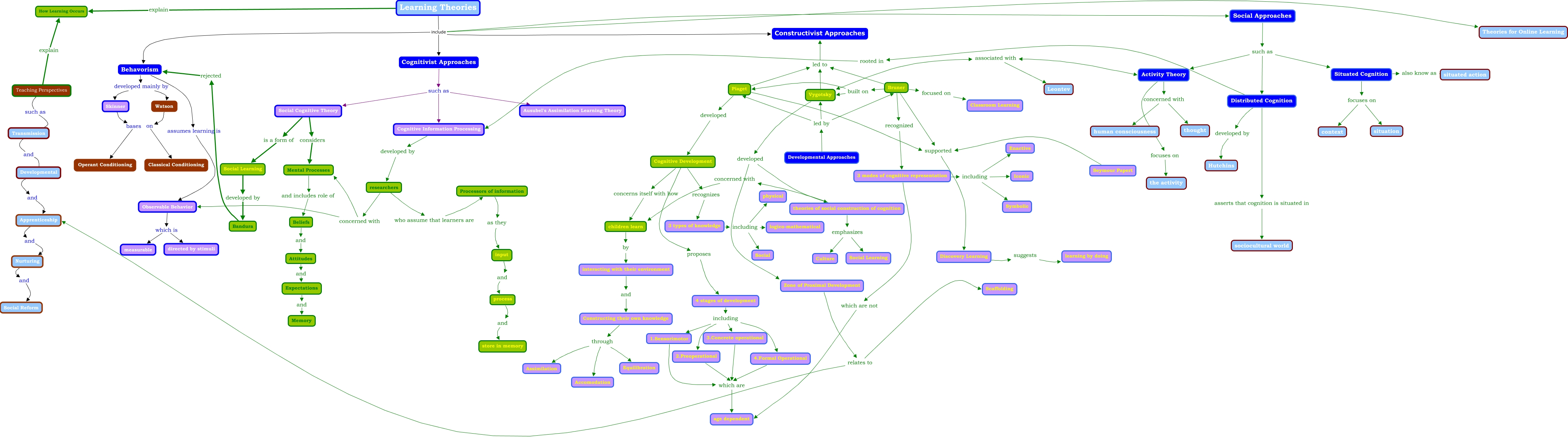 This Concept Map, created with IHMC CmapTools, has information related to: Draft7, children learn by interacting with their environment, theories of social construction of cognition concerned with children learn, 3 types of knowledge including Social, Processors of information as they input, Learning Theories include Social Approaches, Vygotsky led to Constructivist Approaches, Expectations and Memory, Beliefs and Attitudes, Situated Cognition focuses on context, Vygotsky developed Zone of Proximal Development, Vygotsky developed theories of social construction of cognition, Activity Theory concerned with thought, 4 stages of development including 2.Preoperational, Distributed Cognition rooted in Cognitive Information Processing, 3 modes of cognitive representation including Enactive, Behavorism developed mainly by Skinner, Mental Processes and includes role of Beliefs, 1.Sensorimotor which are age dependent, Observable Behavior which is measurable, Distributed Cognition developed by Hutchins