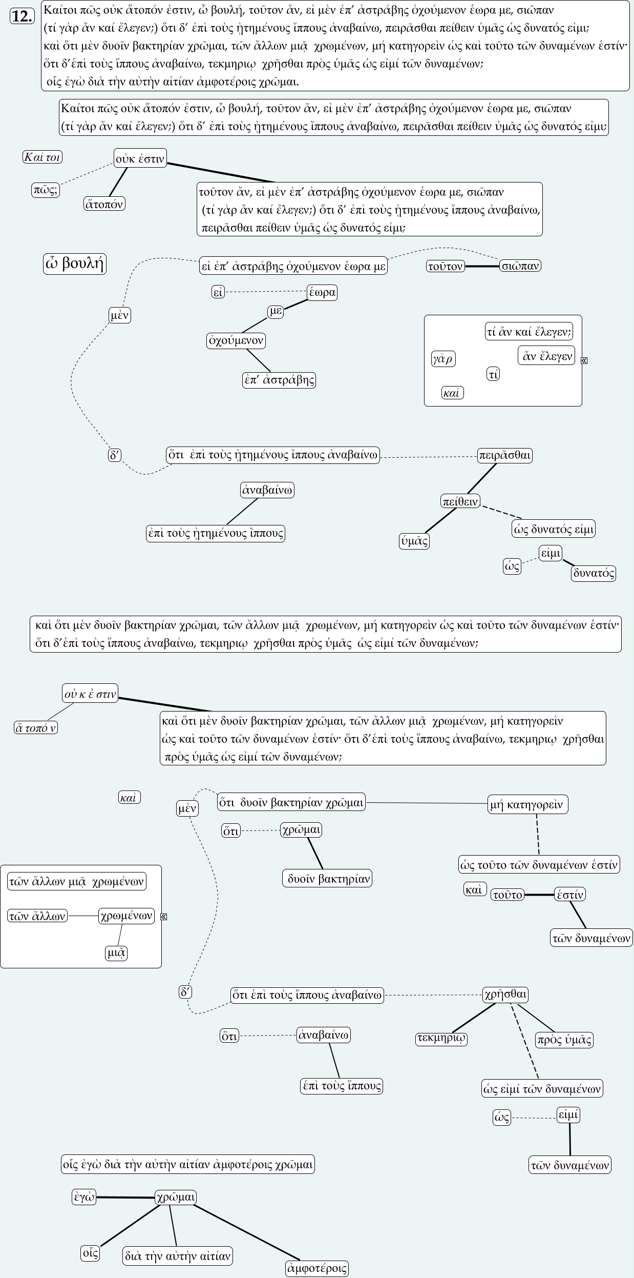 Este Cmap, tiene información relacionada con: frag 12 imprimir, ὅτι ???? χρῶμαι, τῶν δυναμένων ???? εἰμί, εἰμι ???? δυνατός, τοῦτον ἄν, εἰ μὲν ἐπ’ ἀστράβης ὀχούμενον ἑωρα με, σιῶπαν (τί γὰρ ἄν καί ἔλεγεν;) ὅτι δ’ ἐπὶ τοὺς ᾐτημένους ἴππους ἀναβαίνω, πειρᾶσθαι πείθειν ὑμᾶς ὡς δυνατός εἰμι; ???? οὐκ ἐστιν, ἐπ’ ἀστράβης ???? ὀχούμενον, ὡς τοῦτο τῶν δυναμένων ἑστίν ???? μή κατηγορεὶν, δ’ ???? μὲν, ἅτοπόν ???? οὐκ ἐστιν, ὅτι δυοῖν βακτηρίαν χρῶμαι ???? μή κατηγορεὶν, ὡς ???? εἰμι, μιᾷ ???? χρωμένων, ἐγὼ ???? χρῶμαι, ὑμᾶς ???? πείθειν, τῶν ἄλλων ???? χρωμένων, δ’ ???? ὅτι ἑπὶ τοὺς ἵππους ἀναβαίνω, ἐπὶ τοὺς ᾐτημένους ἴππους ???? ἀναβαίνω, πειρᾶσθαι ???? ὅτι ἐπὶ τοὺς ᾐτημένους ἴππους ἀναβαίνω, εἰ ἐπ’ ἀστράβης ὀχούμενον ἑωρα με ???? σιῶπαν, διὰ τὴν αὐτὴν αἰτίαν ???? χρῶμαι, δ’ ???? μὲν