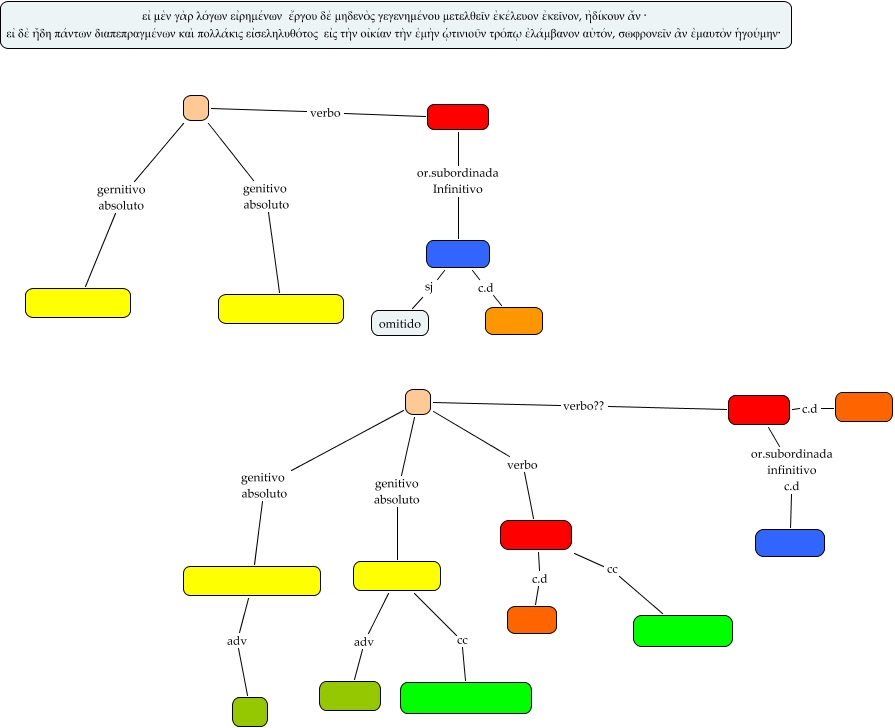 Este Cmap, tiene información relacionada con: parrafo38(alumnos), εἰ verbo?? ἡγούμην·, ἡγούμην· or.subordinada infinitivo c.d σωφρονεῖν, εἰ gernitivo absoluto λόγων εἰρημένων, εἰσεληλυθότος adv πολλάκις, ἐλάμβανον c.d αὐτόν,, ἡγούμην· c.d ἐμαυτὸν, μετελθεῖν c.d ἐκεῖνον,, πάντων διαπεπραγμένων adv ἤδη, εἰ verbo ἐλάμβανον, ἐκέλευον or.subordinada Infinitivo μετελθεῖν, εἰσεληλυθότος cc εἰς τὴν οἰκίαν τὴν ἐμὴν, εἰ genitivo absoluto εἰσεληλυθότος, εἰ genitivo absoluto πάντων διαπεπραγμένων, εἰ verbo ἐκέλευον, μετελθεῖν sj omitido, εἰ genitivo absoluto μηδενὸς γεγενημένου, ἐλάμβανον cc ᾡτινιοῦν τρόπῳ
