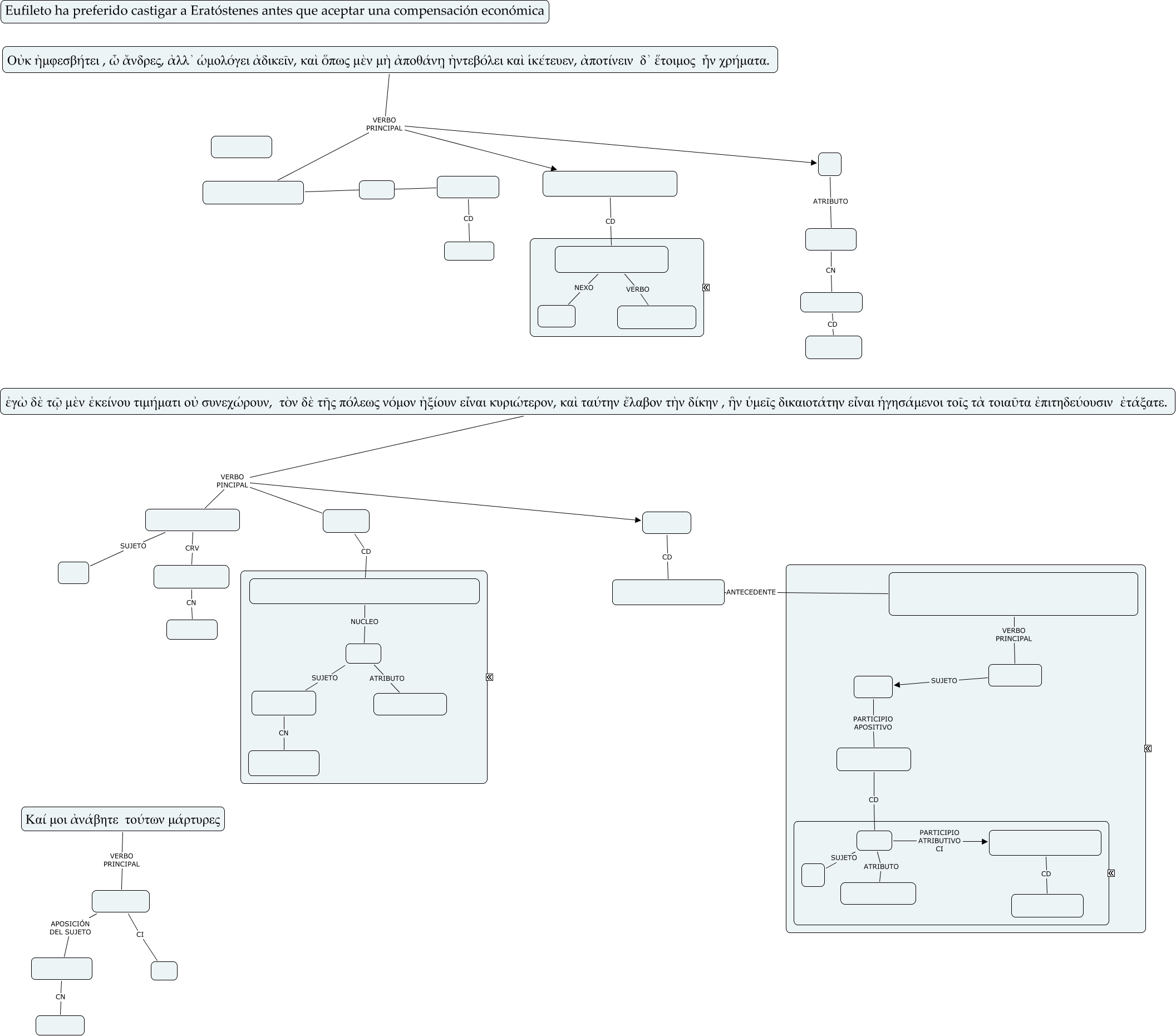Este Cmap, tiene información relacionada con: Lisias I, 29_1020_21_01 BIS, εἶναι SUJETO τὸν νόμον, εἶναι ATRIBUTO κυριώτερον, ἡγησάμενοι CD εἶναι, ἐτάξατε SUJETO ὑμεῖς, τοῖς ἐπιτηδεύουσιν CD τὰ τοιαῦτα, τὸν τῆς πόλεως νόμον εἶναι κυριώτερον NUCLEO εἶναι, ὡμολόγει F ἀλλ᾿, ἐγὼ δὲ τῷ μὲν ἐκείνου τιμήματι οὐ συνεχώρουν, τὸν δὲ τῆς πόλεως νόμον ἠξίουν εἶναι κυριώτερον, καὶ ταύτην ἔλαβον τὴν δίκην , ἣν ὑμεῖς δικαιοτάτην εἶναι ἡγησάμενοι τοῖς τὰ τοιαῦτα ἐπιτηδεύουσιν ἐτάξατε. VERBO PINCIPAL οὐ συνεχώρουν, εἶναι PARTICIPIO ATRIBUTIVO CI τοῖς ἐπιτηδεύουσιν, τὸν νόμον CN τῆς πόλεως, ἣν ὑμεῖς δικαιοτάτην εἶναι ἡγησάμενοι τοῖς τὰ τοιαῦτα ἐπιτηδεύουσιν ἐτάξατε VERBO PRINCIPAL ἐτάξατε, ἠντεβόλει καὶ ἱκέτευεν CD ὅπως μὴ ἀποθάνῃ, ἀποτίνειν CD χρήματα, ἐγὼ δὲ τῷ μὲν ἐκείνου τιμήματι οὐ συνεχώρουν, τὸν δὲ τῆς πόλεως νόμον ἠξίουν εἶναι κυριώτερον, καὶ ταύτην ἔλαβον τὴν δίκην , ἣν ὑμεῖς δικαιοτάτην εἶναι ἡγησάμενοι τοῖς τὰ τοιαῦτα ἐπιτηδεύουσιν ἐτάξατε. VERBO PINCIPAL ἠξίουν, ἔλαβον CD ταύτην τὴν δίκην, Οὐκ ἠμφεσβήτει ???? ἀλλ᾿, οὐ συνεχώρουν CRV τῷ τιμήματι, ἦν ATRIBUTO ἕτοιμος, ἐγὼ δὲ τῷ μὲν ἐκείνου τιμήματι οὐ συνεχώρουν, τὸν δὲ τῆς πόλεως νόμον ἠξίουν εἶναι κυριώτερον, καὶ ταύτην ἔλαβον τὴν δίκην , ἣν ὑμεῖς δικαιοτάτην εἶναι ἡγησάμενοι τοῖς τὰ τοιαῦτα ἐπιτηδεύουσιν ἐτάξατε. VERBO PINCIPAL ἔλαβον, ὅπως μὴ ἀποθάνῃ VERBO μὴ ἀποθάνῃ