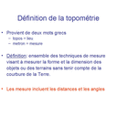 Arpent selon wikipédia.url Topométrie.cmap Topométrie - Alidade.jpg Topométrie - Alidade selon wikipedia.url Topométrie - Appareils de nivellement.jpg Topométrie cadastrale.jpg Topométrie - Carte hydrologique.jpg Topométrie - Chaîne à mesurer.jpg Topométrie de construction.jpg Topométrie - définition.jpg Topométrie - Équerre à prisme selon wikipédia.url Topométrie - Équerre optique.jpg Topométrie - Fil de metal invariable.jpg Topométrie - Implantation.jpg Topométrie - La polygonation.jpg Topométrie - Levé de détails.jpg Topométrie - Mesure de superficies et de volumes.jpg Topométrie - Mesure electroniques de distances.jpg Topométrie - Niveau optique selon wikipedia.url Topométrie - Nivellement par polygonation.jpg Topométrie - Nivellement trigonométrique.jpg Topométrie - Odomètre.jpg Topométrie - Odomètre - Photo.jpg Topométrie - Perches en bois et fil à plomb.jpg Topométrie - Station totale.jpg Topométrie - Tachéomètre.jpg Topométrie - Tachéomètre - Photo.jpg Topométrie - Tachéomètre selon wikipédia.url Topométrie - Topographie selon wikipedia.url