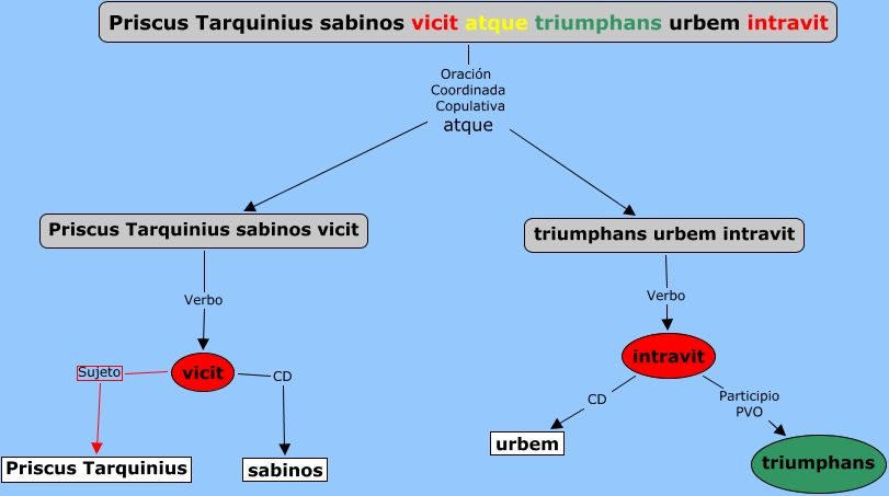 Este Cmap, tiene información relacionada con: Participio Latino 2, Priscus Tarquinius sabinos vicit atque triumphans urbem intravit Oración Coordinada Copulativa atque Priscus Tarquinius sabinos vicit, vicit CD sabinos, intravit Participio PVO triumphans, Priscus Tarquinius sabinos vicit atque triumphans urbem intravit Oración Coordinada Copulativa atque triumphans urbem intravit, Priscus Tarquinius sabinos vicit Verbo vicit, vicit Sujeto Priscus Tarquinius, intravit CD urbem, triumphans urbem intravit Verbo intravit