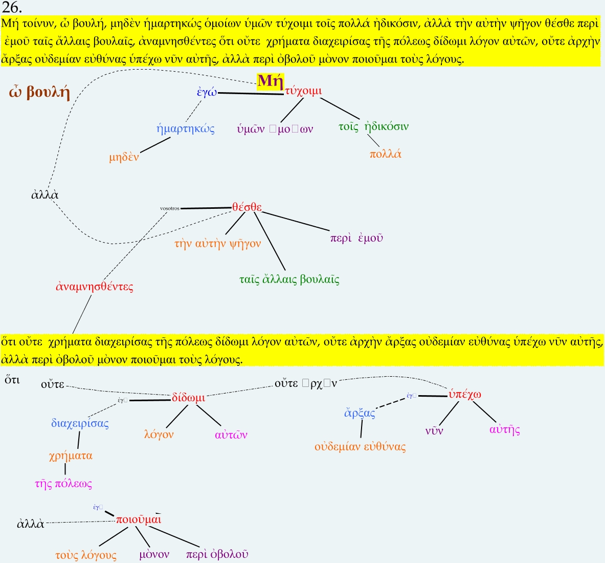 Este Cmap, tiene información relacionada con: frag 26, νῦν ???? ὑπέχω, τὴν αὐτὴν ψῆγον ???? θέσθε, δίδωμι ???? οὔτε ἀρχὴν, τῆς πόλεως ???? χρήματα, τοῖς ἠδικόσιν ???? τύχοιμι, οὔτε ???? δίδωμι, ἐγώ ???? δίδωμι, ταῖς ἄλλαις βουλαῖς ???? θέσθε, μὸνον ???? ποιοῦμαι, αὐτῶν ???? δίδωμι, ἐγώ ???? ποιοῦμαι, ὑμῶν ὁμοίων ???? τύχοιμι, ἐγώ ???? τύχοιμι, ἐγώ ???? διαχειρίσας, ἐγώ ???? ὑπέχω, διαχειρίσας ???? χρήματα, ἐγώ ???? ἡμαρτηκώς, τοὺς λόγους ???? ποιοῦμαι, αὐτῆς ???? ὑπέχω, λόγον ???? δίδωμι