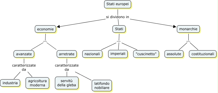 Questa Cmap, creata con IHMC CmapTools, contiene informazioni relative a: xx) Situazione dell'Europa, economie ... arretrate, Stati ... "cuscinetto", Stati ... imperiali, Stati europei si dividono in monarchie, economie ... avanzate, monarchie ... costituzionali, avanzate caratterizzate da agricoltura moderna, Stati europei si dividono in economie, arretrate caratterizzate da servitù della gleba, monarchie ... assolute, arretrate caratterizzate da latifondo nobiliare, avanzate caratterizzate da industria, Stati europei si dividono in Stati, Stati ... nazionali