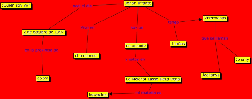 Este Cmap, tiene información relacionada con: Johan Infante, Johan Infante naci el dia 2 de octubre de 1997, 2 de octubre de 1997 en la provincia de colo'n, Johan Infante Vivo en el amanecer, Johan Infante soy un estudiante, estudiante y estoy en La Melchor Lasso DeLa Vega, Johan Infante tengo 2Hermanas, Johan Infante tengo 11años, La Melchor Lasso DeLa Vega mi materia es inovacion, 2Hermanas que se llaman Joelianys, 2Hermanas que se llaman Johany