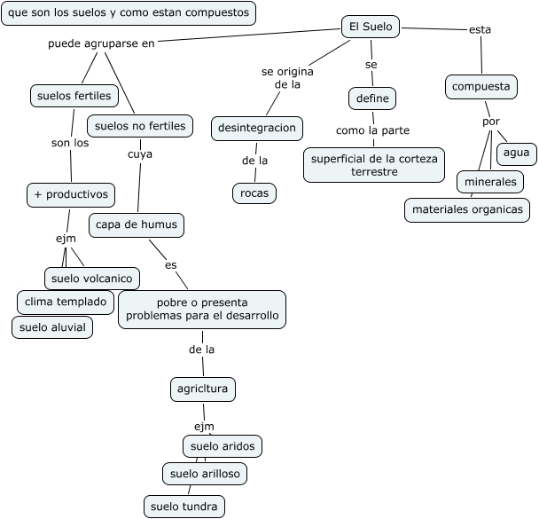 El Suelo, agricltura ejm suelo aridos, agricltura ejm suelo tundra, define como la parte superficial de la corteza terrestre, El Suelo se origina de la desintegracion, suelos no fertiles cuya capa de humus, El Suelo se define, pobre o presenta problemas para el desarrollo de la agricltura, + productivos ejm suelo volcanico, El Suelo puede agruparse en suelos fertiles, desintegracion de la rocas