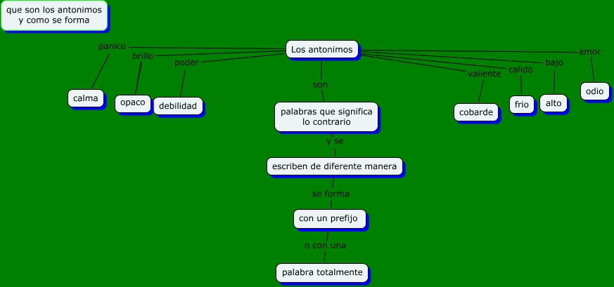 los antonimo, escriben de diferente manera se forma con un prefijo, Los antonimos poder debilidad, Los antonimos valiente cobarde, palabras que significa lo contrario y se escriben de diferente manera, Los antonimos brillo opaco, con un prefijo o con una palabra totalmente, Los antonimos calido frio, Los antonimos panico calma, Los antonimos bajo alto, Los antonimos son palabras que significa lo contrario