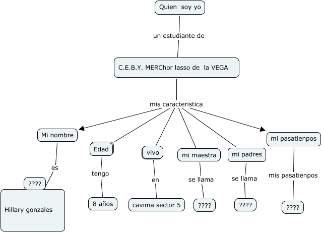 Este Cmap, tiene información relacionada con: quien soy yo, C.E.B.Y. MERChor lasso de la VEGA mis caracteristica mi pasatienpos, Hillary gonzales ???? ????, edad tengo 8 años, Mi nombre es Hillary gonzales, C.E.B.Y. MERChor lasso de la VEGA mis caracteristica mi maestra, C.E.B.Y. MERChor lasso de la VEGA mis caracteristica vivo, C.E.B.Y. MERChor lasso de la VEGA mis caracteristica Edad, C.E.B.Y. MERChor lasso de la VEGA mis caracteristica mi padres, mi padres se llama ????, Quien soy yo un estudiante de C.E.B.Y. MERChor lasso de la VEGA, vivo en cavima sector 5, mi maestra se llama ????, mi pasatienpos mis pasatienpos ????, C.E.B.Y. MERChor lasso de la VEGA mis caracteristica Mi nombre
