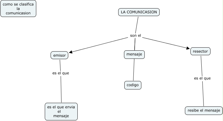 Este Cmap, tiene información relacionada con: la comunicacion, LA COMUNICASION son el emisor, mensaje son el codigo, LA COMUNICASION son el codigo, resector es el que resibe el mensaje, LA COMUNICASION son el resector, mensaje son el resector, mensaje son el emisor, emisor es el que es el que envia el mensaje