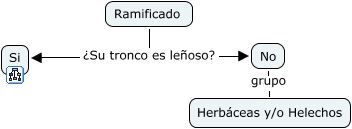 Ramificado, Ramificado ¿Su tronco es leñoso? Si, No grupo Herbáceas y/o Helechos, Ramificado ¿Su tronco es leñoso? No