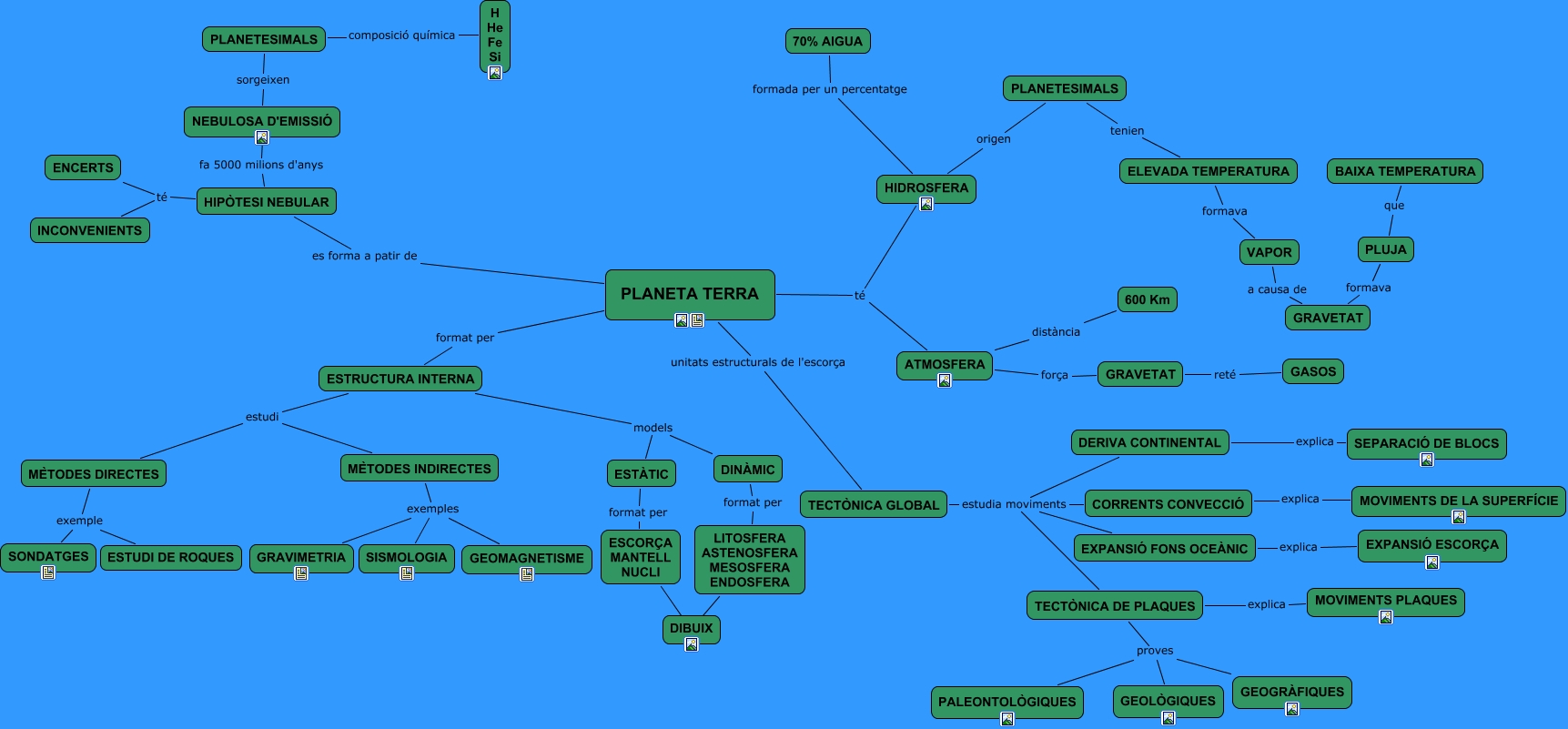 Aquest mapa conceptual conté informació relacionada amb: Jordi Coste, MÈTODES DIRECTES exemple ESTUDI DE ROQUES, VAPOR a causa de GRAVETAT, ESTRUCTURA INTERNA models ESTÀTIC, ELEVADA TEMPERATURA formava VAPOR, TECTÒNICA DE PLAQUES proves GEOLÒGIQUES, HIDROSFERA formada per un percentatge 70% AIGUA, PLUJA que BAIXA TEMPERATURA, MÈTODES INDIRECTES exemples SISMOLOGIA, GRAVETAT reté GASOS, ESCORÇA MANTELL NUCLI ???? DIBUIX, TECTÒNICA DE PLAQUES proves GEOGRÀFIQUES, PLANETESIMALS composició química H He Fe Si, MÈTODES DIRECTES exemple SONDATGES, EXPANSIÓ FONS OCEÀNIC explica EXPANSIÓ ESCORÇA, ESTÀTIC format per ESCORÇA MANTELL NUCLI, TECTÒNICA GLOBAL estudia moviments DERIVA CONTINENTAL, MÈTODES INDIRECTES exemples GEOMAGNETISME, ESTRUCTURA INTERNA estudi MÈTODES DIRECTES, TECTÒNICA DE PLAQUES proves PALEONTOLÒGIQUES, ATMOSFERA força GRAVETAT