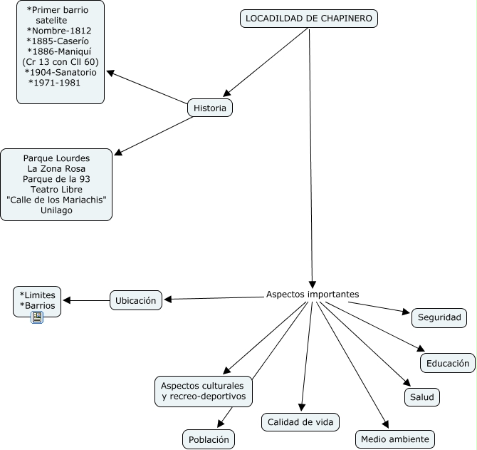 Este Cmap, tiene información relacionada con: Mapa Chapinero, Historia ???? Parque Lourdes La Zona Rosa Parque de la 93 Teatro Libre "Calle de los Mariachis" Unilago, LOCADILDAD DE CHAPINERO Aspectos importantes Seguridad, LOCADILDAD DE CHAPINERO ???? Historia, LOCADILDAD DE CHAPINERO Aspectos importantes Aspectos culturales y recreo-deportivos, LOCADILDAD DE CHAPINERO Aspectos importantes Salud, LOCADILDAD DE CHAPINERO Aspectos importantes Población, Ubicación ???? *Limites *Barrios, LOCADILDAD DE CHAPINERO Aspectos importantes Ubicación, LOCADILDAD DE CHAPINERO Aspectos importantes Educación, LOCADILDAD DE CHAPINERO Aspectos importantes Calidad de vida, Historia ???? *Primer barrio satelite *Nombre-1812 *1885-Caserío *1886-Maniquí (Cr 13 con Cll 60) *1904-Sanatorio *1971-1981, LOCADILDAD DE CHAPINERO Aspectos importantes Medio ambiente
