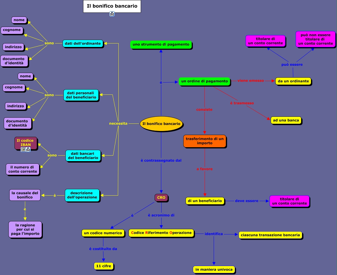 Il bonifico bancario, CRO è un codice numerico, Il bonifico bancario necessita descrizione dell'operazione, Il bonifico bancario necessita dati bancari del beneficiario, un ordine di pagamento consiste trasferimento di un importo, la causale del bonifico è la ragione per cui si paga l'importo, di un beneficiario deve essere titolare di un conto corrente, trasferimento di un importo a favore di un beneficiario, dati personali del beneficiario sono documento d'identità, un ordine di pagamento viene emesso da un ordinante, dati dell'ordinante sono documento d'identità