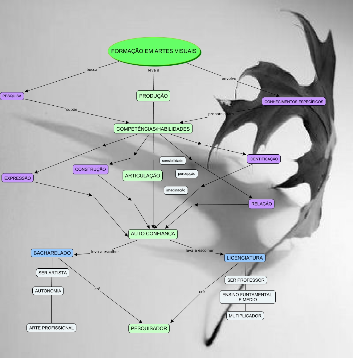 Esse mapa conceitual, produzido no IHMC CmapTools, tem a informação relacionada a: FORMAÇÃO EM ARTES VISUAIS, CONHECIMENTOS ESPECÍFICOS proporcionam COMPETÊNCIAS/HABILIDADES, PESQUISA supõe COMPETÊNCIAS/HABILIDADES, AUTO CONFIANÇA leva a escolher BACHARELADO, BACHARELADO ARTE PROFISSIONAL, COMPETÊNCIAS/HABILIDADES IDENTIFICAÇÃO, PRODUÇÃO AUTO CONFIANÇA, CONSTRUÇÃO AUTO CONFIANÇA, FORMAÇÃO EM ARTES VISUAIS leva a PRODUÇÃO, COMPETÊNCIAS/HABILIDADES RELAÇÃO, LICENCIATURA MUTIPLICADOR, EXPRESSÃO AUTO CONFIANÇA, COMPETÊNCIAS/HABILIDADES EXPRESSÃO, FORMAÇÃO EM ARTES VISUAIS busca PESQUISA, LICENCIATURA crê PESQUISADOR, COMPETÊNCIAS/HABILIDADES CONSTRUÇÃO, AUTO CONFIANÇA leva a escolher LICENCIATURA, RELAÇÃO AUTO CONFIANÇA, IDENTIFICAÇÃO AUTO CONFIANÇA, BACHARELADO crê PESQUISADOR, FORMAÇÃO EM ARTES VISUAIS envolve CONHECIMENTOS ESPECÍFICOS
