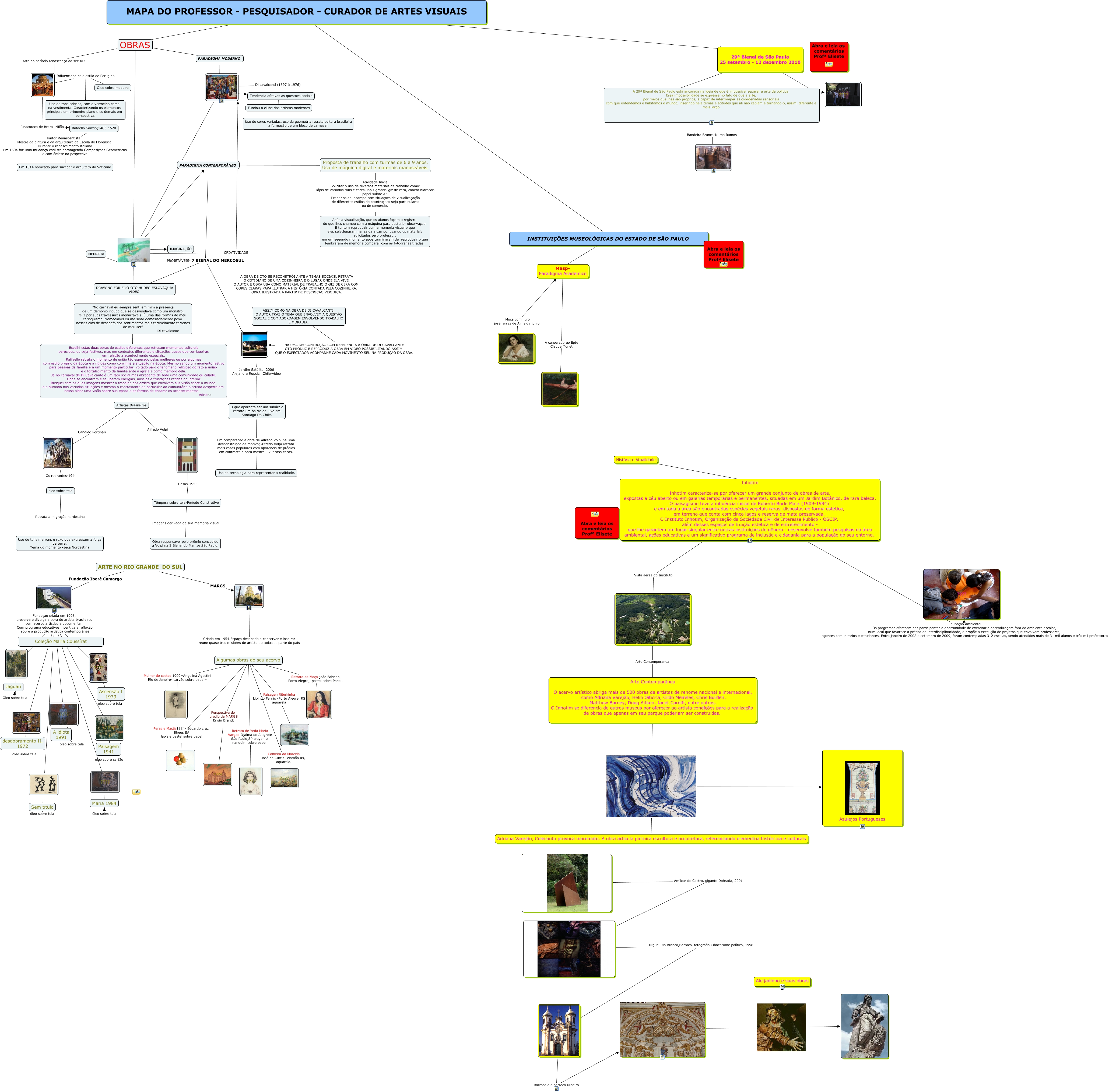 Esse mapa conceitual, produzido no IHMC CmapTools, tem a informação relacionada a: MAPA DO PROFESSOR PESQUISADOR CURADOR DE ARTES VISUAIS, ???? Fundaçao criada em 1995, preserva e divulga a obra do artista brasileiro, com acervo artistico e documental. Com programa educativos incentiva a reflexão sobre a produção artistica contemporânea ????, História e Atualidade Inhotim Inhotim Inhotim caracteriza-se por oferecer um grande conjunto de obras de arte, expostas a céu aberto ou em galerias temporárias e permanentes, situadas em um Jardim Botânico, de rara beleza. O paisagismo teve a influência inicial de Roberto Burle Marx (1909-1994) e em toda a área são encontradas espécies vegetais raras, dispostas de forma estética, em terreno que conta com cinco lagos e reserva de mata preservada. O Instituto Inhotim, Organização da Sociedade Civil de Interesse Público - OSCIP, além desses espaços de fruição estética e de entretenimento - que lhe garantem um lugar singular entre outras instituições do gênero - desenvolve também pesquisas na área ambiental, ações educativas e um significativo programa de inclusão e cidadania para a população do seu entorno., ???? Oleo sobre tela Jaguari, MEMORIA CRIATIVIDADE ????, Amilcar de Castro, gigante Dobrada, 2001, Pinacoteca de Brera- Milão Rafaello Sanzio(1483-1520, O que aparenta ser um subúrbio retrata um bairro de luxo em Santiago Do Chile. Em comparação a obra de Alfredo Volpi há uma desconstrução de motivo; Alfredo Volpi retrata mais casas populares com aparencia de prédios em contraste a obra mostra luxuosasa casas. Uso da tecnologia para representar a realidade., oleo sobre tela Retrata a migração nordestina Uso de tons marrons e roxo que expressam a força da terra. Tema do momento -seca Nordestina, ARTE NO RIO GRANDE DO SUL Fundação Iberê Camargo ????, PARADIGMA CONTEMPORÂNEO PROJETÁVEIS- 7 BIENAL DO MERCOSUL DRAWING FOR FILÓ-OTO HUDEC-ESLOVÁQUIA VIDEO, Arte Contemporânea O acervo artístico abriga mais de 500 obras de artistas de renome nacional e internacional, como Adriana Varejão, Helio Oiticica, Cildo Meireles, Chris Burden, Matthew Barney, Doug Aitken, Janet Cardiff, entre outros. O Inhotim se diferencia de outros museus por oferecer ao artista condições para a realização de obras que apenas em seu parque poderiam ser construídas. Azulejos Portugueses, ???? óleo sobre tela desdobramento II, 1972, Algumas obras do seu acervo Perspectiva do prédio da MARGS Erwin Brandt ????, Algumas obras do seu acervo Peras e Maçãs1984- Eduardo cruz Ilheus BA lápis e pastel sobre papel ????, Moça com livro josé ferraz de Almeida junior Masp- Paradigma Academico, ???? Jardim Satélite, 2006 Alejandra Rupcich.Chile-vídeo O que aparenta ser um subúrbio retrata um bairro de luxo em Santiago Do Chile., Inhotim Inhotim caracteriza-se por oferecer um grande conjunto de obras de arte, expostas a céu aberto ou em galerias temporárias e permanentes, situadas em um Jardim Botânico, de rara beleza. O paisagismo teve a influência inicial de Roberto Burle Marx (1909-1994) e em toda a área são encontradas espécies vegetais raras, dispostas de forma estética, em terreno que conta com cinco lagos e reserva de mata preservada. O Instituto Inhotim, Organização da Sociedade Civil de Interesse Público - OSCIP, além desses espaços de fruição estética e de entretenimento - que lhe garantem um lugar singular entre outras instituições do gênero - desenvolve também pesquisas na área ambiental, ações educativas e um significativo programa de inclusão e cidadania para a população do seu entorno. Vista áerea do Instituto, Arte Contemporânea O acervo artístico abriga mais de 500 obras de artistas de renome nacional e internacional, como Adriana Varejão, Helio Oiticica, Cildo Meireles, Chris Burden, Matthew Barney, Doug Aitken, Janet Cardiff, entre outros. O Inhotim se diferencia de outros museus por oferecer ao artista condições para a realização de obras que apenas em seu parque poderiam ser construídas. Adriana Varejão, Celecanto provoca maremoto. A obra articula pintuira escultura e arquitetura, referenciando elementoa históricoa e culturais, ???? Criada em 1954.Espaço destinado a conservar e inspirar reune quase tres mislobrs de artista de todas as parte do país Algumas obras do seu acervo, OBRAS ???? PARADIGMA MODERNO