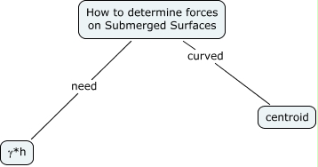 This Concept Map, created with IHMC CmapTools, has information related to: Submerged Surfaces, How to determine forces on Submerged Surfaces need γ*h, How to determine forces on Submerged Surfaces curved centroid