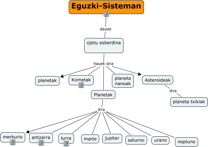 IHMC CmapTools-ekin sortu den kontzeptu-mapa honek honi buruzko informazioa du: eguzki_sistema_paula_yeray, ojetu esberdina hauek dira planetak, Asteroideak dira planeta txikiak, Planetak dira artizarra, Planetak dira neptuno, Planetak dira merkurio, Eguzki-Sisteman daude ojetu esberdina, Planetak dira marte, ojetu esberdina hauek dira Planetak, ojetu esberdina hauek dira Kometak, Planetak dira urano, Planetak dira jupiter, ojetu esberdina hauek dira Asteroideak, Planetak dira saturno, ojetu esberdina hauek dira planeta nanoak, Planetak dira lurra