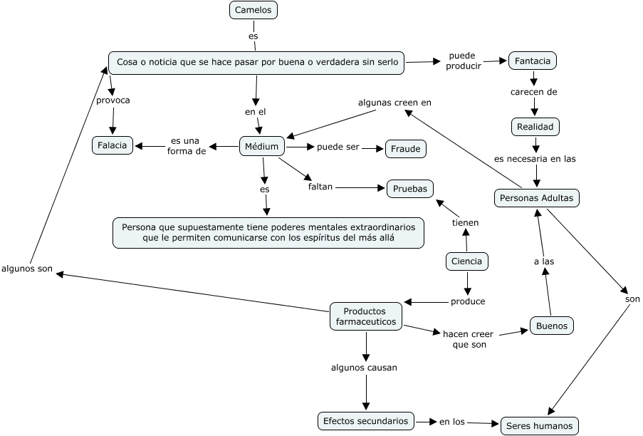 This Concept Map, created with IHMC CmapTools, has information related to: compu y sociedad, Personas Adultas son Seres humanos, Médium es Persona que supuestamente tiene poderes mentales extraordinarios que le permiten comunicarse con los espíritus del más allá, Buenos a las Personas Adultas, Fantacia carecen de Realidad, Ciencia tienen Pruebas, Productos farmaceuticos algunos causan Efectos secundarios, Productos farmaceuticos hacen creer que son Buenos, Personas Adultas algunas creen en Médium, Médium puede ser Fraude, Realidad es necesaria en las Personas Adultas, Cosa o noticia que se hace pasar por buena o verdadera sin serlo puede producir Fantacia, Camelos es Cosa o noticia que se hace pasar por buena o verdadera sin serlo, Efectos secundarios en los Seres humanos, Médium es una forma de Falacia, Cosa o noticia que se hace pasar por buena o verdadera sin serlo provoca Falacia, Cosa o noticia que se hace pasar por buena o verdadera sin serlo en el Médium, Ciencia produce Productos farmaceuticos, Productos farmaceuticos algunos son Cosa o noticia que se hace pasar por buena o verdadera sin serlo, Médium faltan Pruebas