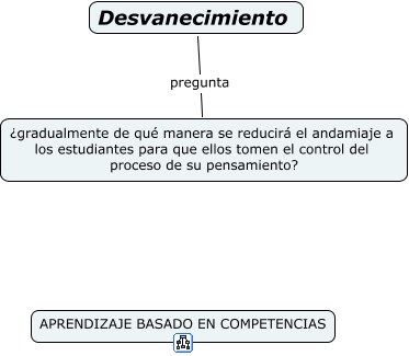Este Cmap, tiene información relacionada con: desvanecimiento, Desvanecimiento pregunta ¿gradualmente de qué manera se reducirá el andamiaje a los estudiantes para que ellos tomen el control del proceso de su pensamiento?