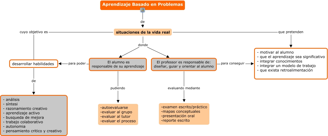 Este Cmap, tiene información relacionada con: ABProblemas.cmap, situaciones de la vida real donde El alumno es responsable de su aprendizaje, El alumno es responsable de su aprendizaje pudiendo -autoevaluarse -evaluar al grupo -evaluar al tutor -evaluar el proceso, El professor es responsable de: diseñar, guiar y orientar al alumno para conseguir - motivar al alumno - que el aprendizaje sea significativo - integrar conocimientos - integrar un modelo de trabajo - que exista retroalimentación, El alumno es responsable de su aprendizaje para poder desarrollar habilidades, Aprendizaje Basado en Problemas de situaciones de la vida real, situaciones de la vida real que pretenden - motivar al alumno - que el aprendizaje sea significativo - integrar conocimientos - integrar un modelo de trabajo - que exista retroalimentación, El professor es responsable de: diseñar, guiar y orientar al alumno evaluando mediante -examen escrito/práctico -mapas conceptuales -presentación oral -reporte escrito, situaciones de la vida real donde El professor es responsable de: diseñar, guiar y orientar al alumno, situaciones de la vida real cuyo objetivo es desarrollar habilidades, desarrollar habilidades de - análisis - síntesi - razonamiento creativo - aprendizaje activo - busqueda de mejora - trabajo colaborativo - autonomia - pensamiento critico y creativo